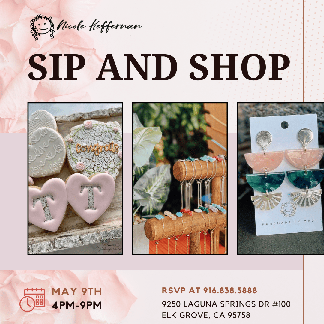 Join us on May 9th at 4 PM at 9250 Laguna Springs Dr #100, Elk Grove for a fabulous night of sipping, shopping, and connecting with our amazing community β and best of all, itβs free to attend!
